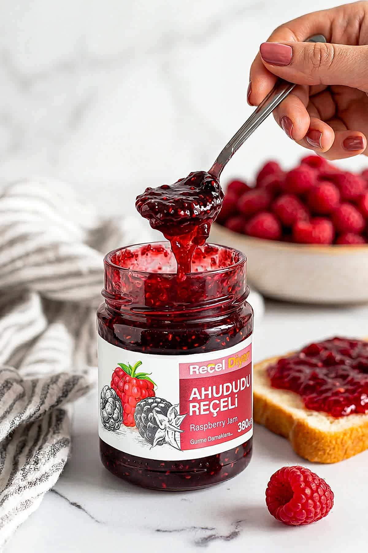 Taze ve olgun ahududularla hazırlanan, doğal lezzet sunan reçel.