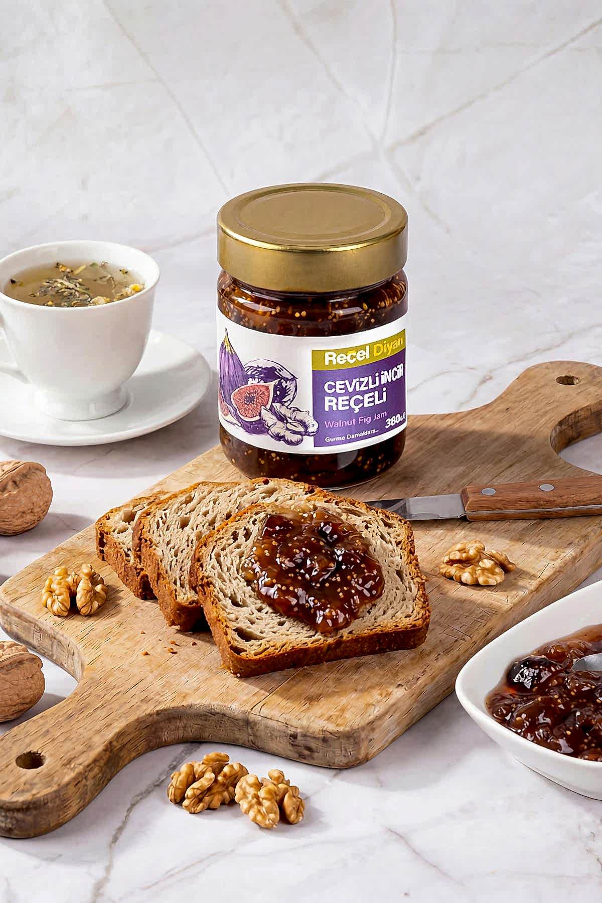 Reçel kahvaltı sofralarının vazgeçilmez bir tatlı besinidir. Birçok reçel çeşidinden biri olan Cevizli Kuru İncir reçeli Reçel Diyarı Cevizli Kuru İncir Reçeli yine özel Reçel Diyarı kalitesi ile üretilmektedir. Ayrıca Reçel Diyarı Cevizli Kuru İncir reçelleri tamamen hijyenik koşullarda el değmeden üretilir.