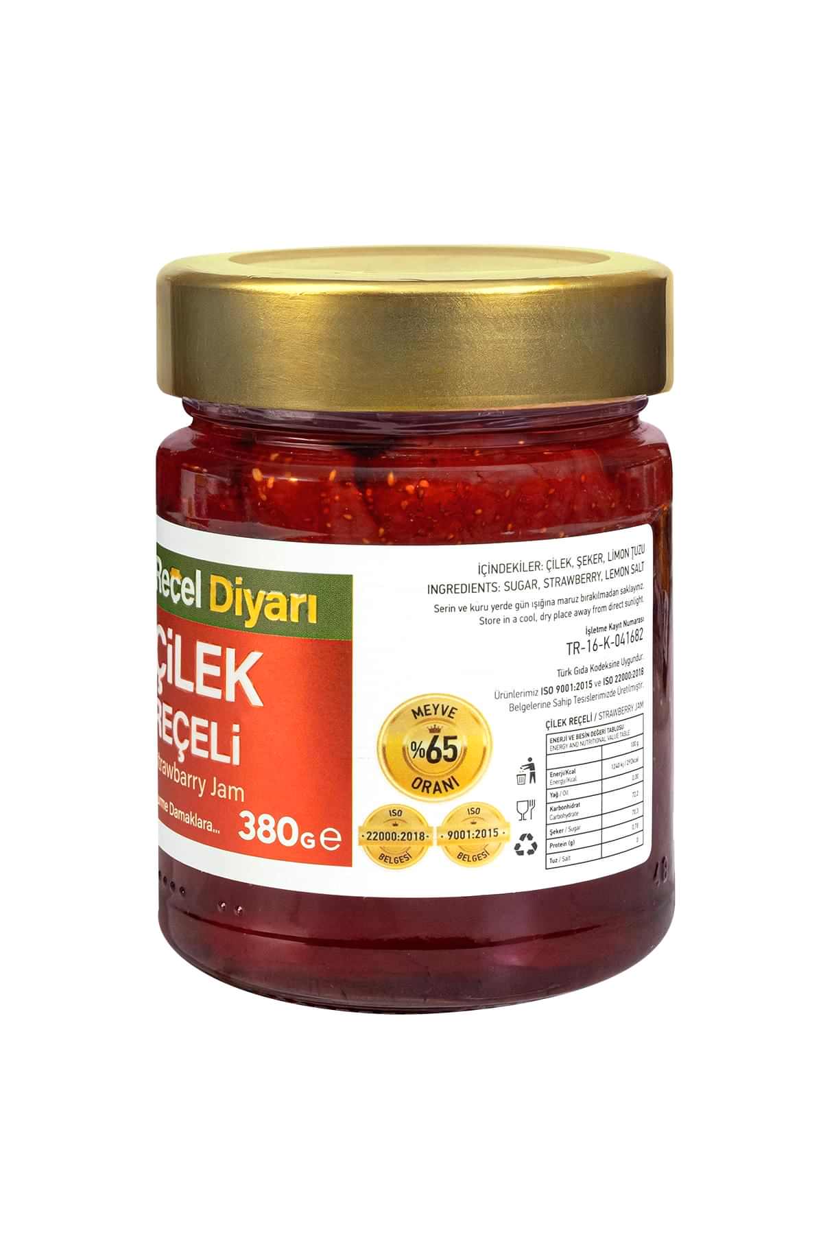 Böylece Reçel Diyarı Çilek Reçeli tazeliğini ve lezzetini ilk günkü gibi raf ömrü boyunca korumuş olur. Reçel çeşitleri bakımından çok zengin olan Reçel Diyarı ailesi, reçel tarifleri sırrını kalite ve sevgi olarak sizlere sunuyor. Ev usulü Çilek reçeli tarifindeki gibi sevgiyle hazırlanmış Çilek reçellerimizi gönül rahatlığı ile tüketebilirsiniz.